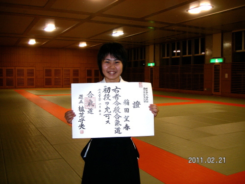本年4月審査で初段取得の“袴デビュー”は、現在大学院生(医歯薬学・博士課程)のEさん。